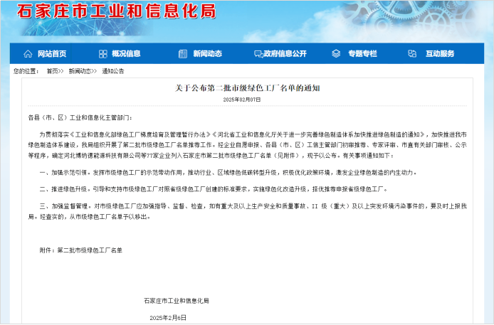 蛇年伊始,開門迎喜訊!2月7日,石家莊市工業(yè)和信息化局正式公布了第二批市級綠色工廠名單,河北拓普電氣股份有限公司憑借其在綠色制造、節(jié)能減排以及可持續(xù)發(fā)展領(lǐng)域的卓越表現(xiàn),成功躋身其中,榮獲石家莊市級綠色工廠稱號!這一榮譽不僅是對拓普電氣多年來堅持綠色發(fā)展的肯定,更是對其未來持續(xù)創(chuàng)新的激勵。